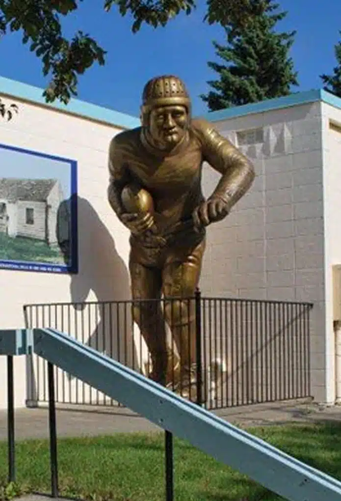 Behind Smokey you will see The Bronko Nagurski Museum.